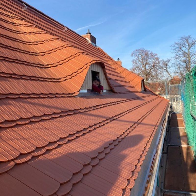 Wir beschäftigen zur Zeit 1 Dachdeckermeister, 2 Dachdeckergesellen, 1 Dachklempner und 1 Auszubildenden. Unsere Mitarbeiter halten sich ständig durch Lehrgänge, wie zum Beispiel: eingebundene Biberkehlen, TRGS 519 für ASI-Arbeiten (Asbestzementprodukten) und BG 128 auf dem neusten Stand in unserer Branche.